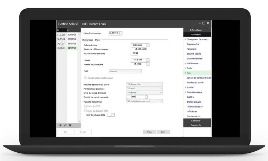 Avec l’Assistant de préparation, réalisez vos bulletins de salaire en intégrant le report automatique des éléments constants, la gestion des titres restaurant, le calcul des paies à l’envers, la gestion des acomptes (de la génération au virement), le contrôle et le report automatique des acomptes payés et disposez d’une fonction de rappel des salaires pour gérer la rétroactivité.
